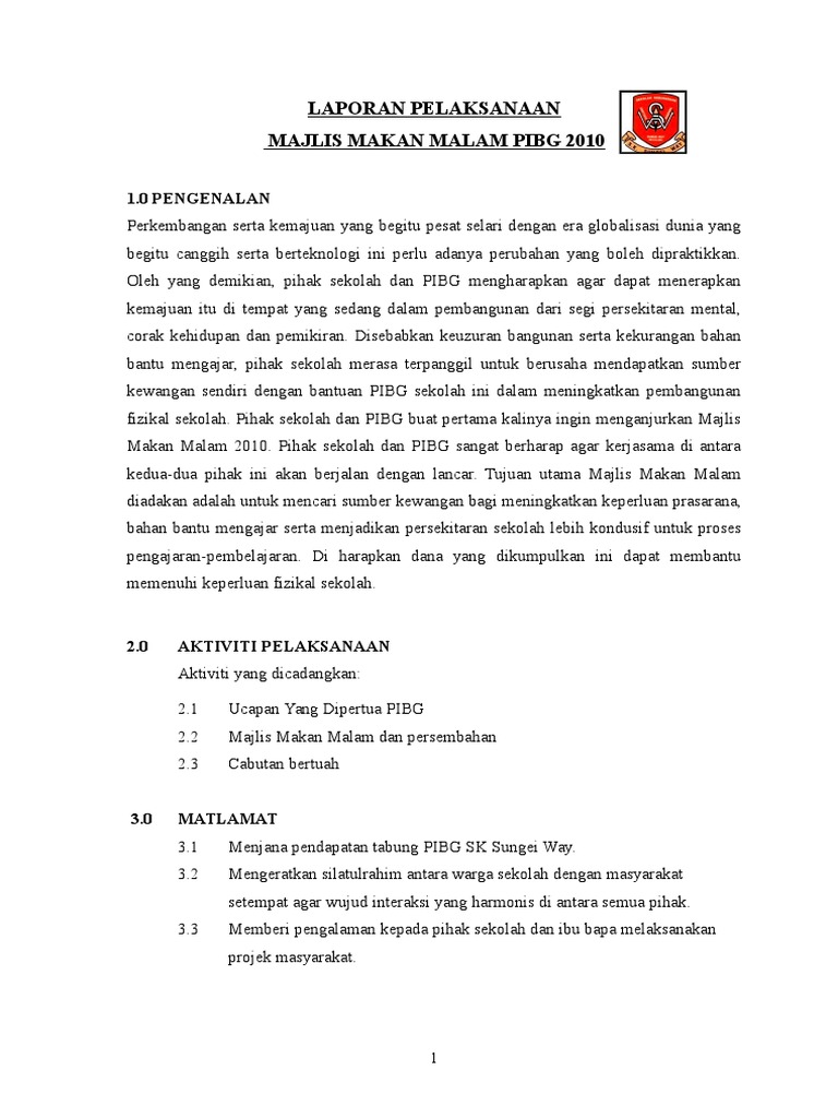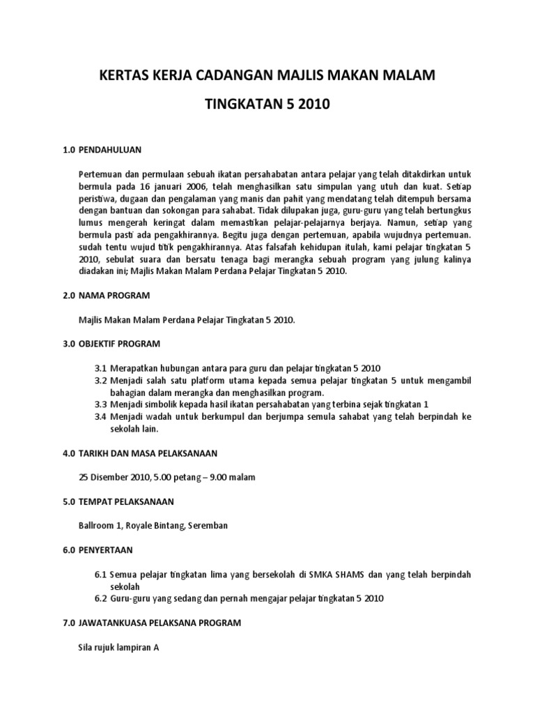 Kertas Kerja Cadangan Majlis Makan Malam Pdf
